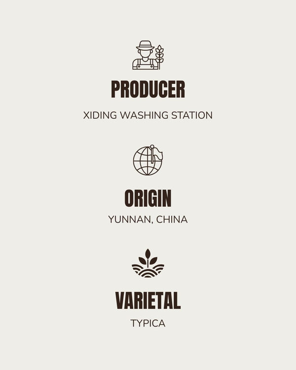 Produced at the Xiding Washing Station, this lot undergoes a meticulous two-stage fermentation designed to enhance clarity and brightness. Fully ripe cherries are handpicked, washed in mountain spring water and dry-fermented before a carefully monitored secondary fermentation. The 72-hour process, followed by slow drying on raised beds, creates a coffee that is more complex and refined than traditional washed lots. Named after the Purple-Leaf varietal grown in the region, Purple Rain celebrates both exceptional quality and the distinctive purple hue of young coffee leaves in Xiding.